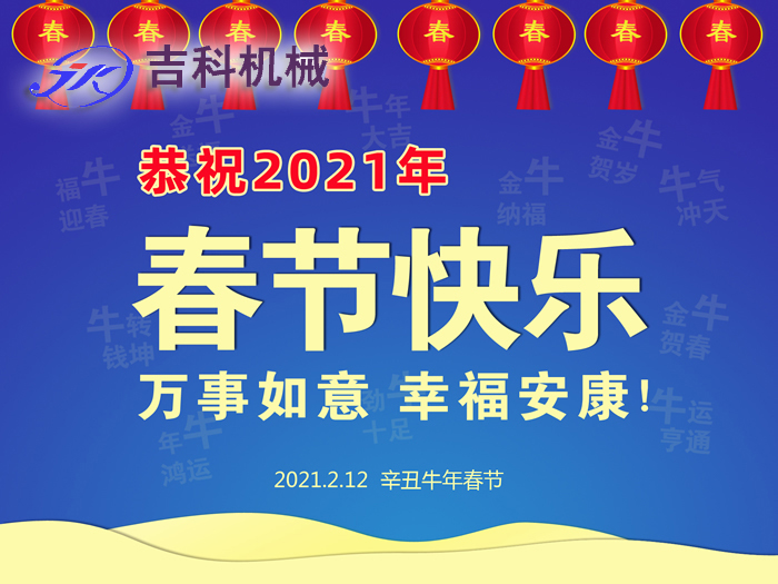 阜新吉科生物能源設(shè)備有限公司祝您2021春節(jié)快樂!祝新老用戶,關(guān)心和支持吉科機(jī)械的各界朋友們新春愉快、工作順利、身體健康、闔家歡樂!